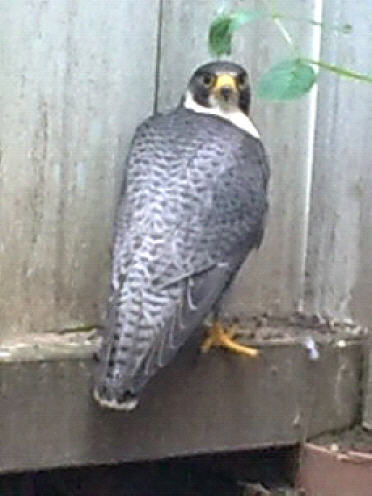 Links: Junger Wanderfalke aus einer Gebäudebrut, der nach seiner Bruchlandung auf der Straß ein der Station abgegeben und von da wieder ausgewildert wurde.