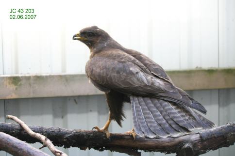 Die Zahl der Mäusebussarde ist bedingt durch die Schneelage zu Jahresbeginn sehr hoch. Viele von ihnen waren bei Aufnahme von toten Tieren auf der Fahrbahn mit Autos kollidiert.