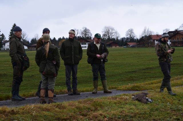 Gejagt wurde in mehreren Gruppen in den Landkreisen Oberallgäu, Ostallgäu, Unterallgäu, Weilheim-Schongau und Dillingen. Während die Habichte schnell startklar waren wurden die Falken vereinzelt erst noch gelüftet und an die Badebrente gestellt. Für den ein oder anderen der das erste Mal an dieser Beize teilnahm, ein ungewohntes Bild. Und so kratzte man im Stillen schon mit den Hufen.