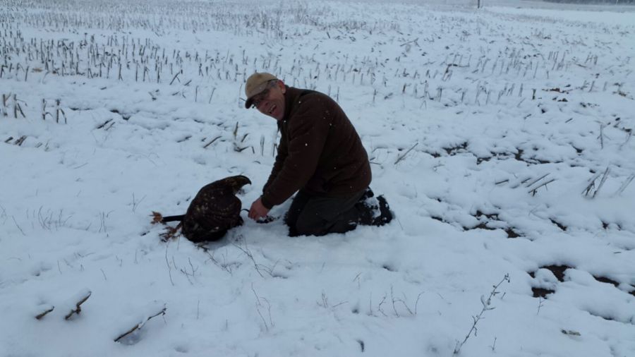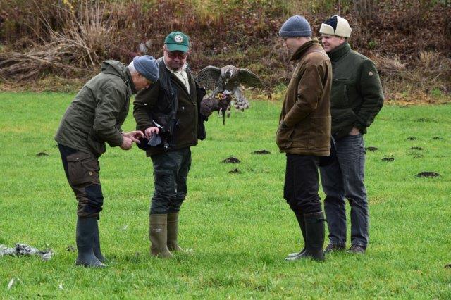 Schließlich waren alle startklar und man konnte in die Reviere ausrücken. Während die Gruppenleiter noch nach guten Chancen für die Falken suchten, hatten die Habichte bereits Erfolg. Allen voran „Brunhilde“ das Habichtsweib von Winfried Hirsch, die allein am ersten Tag mehrere Krähen fing.